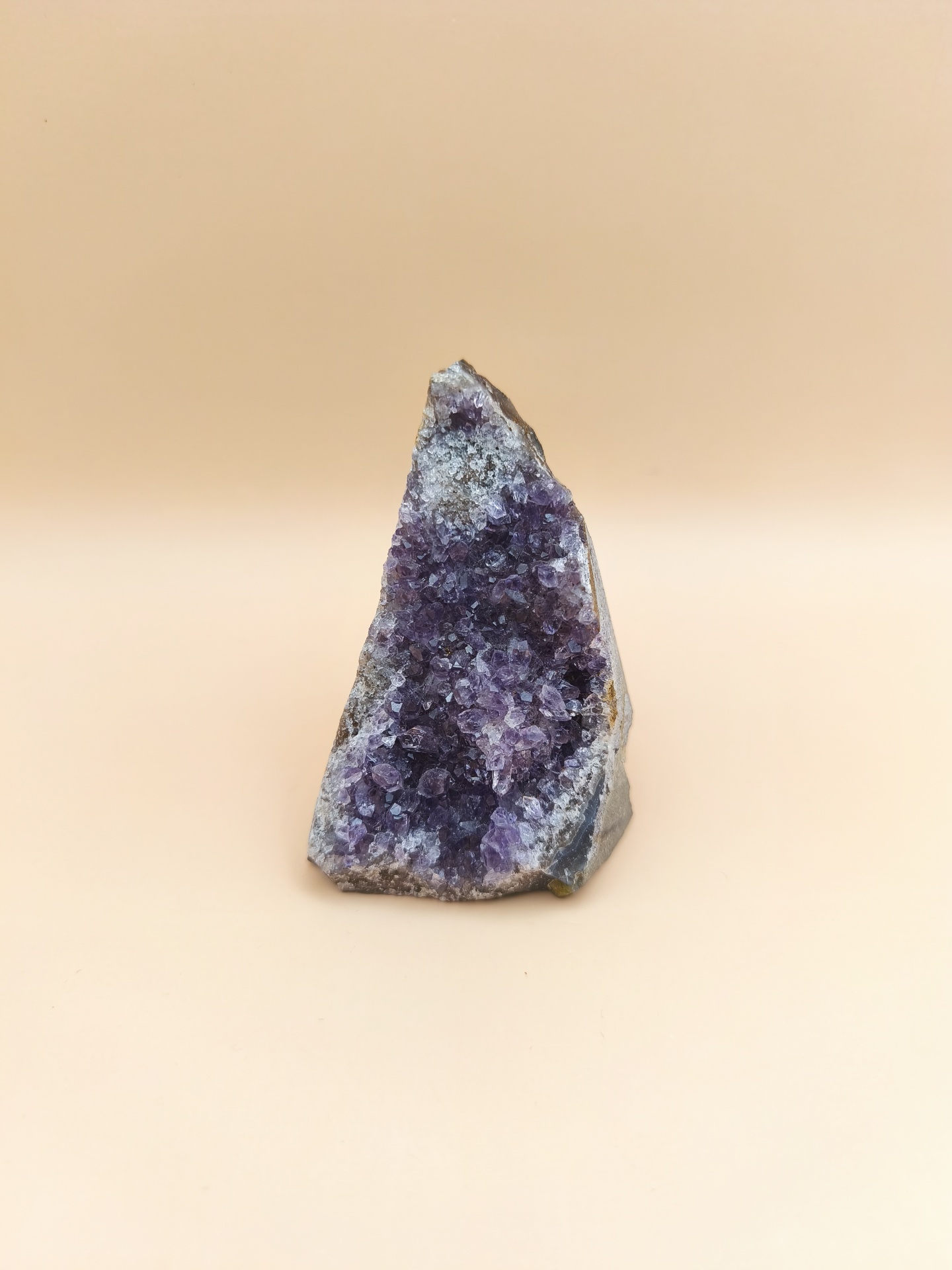 A Drusa de Ametista é uma das pedras mais completas e poderosas para proteção espiritual, transmutação energética, meditação e equilíbrio emocional. Sua formação em drusa permite que a energia se espalhe suavemente por todo o ambiente, elevando a vibração e trazendo paz.