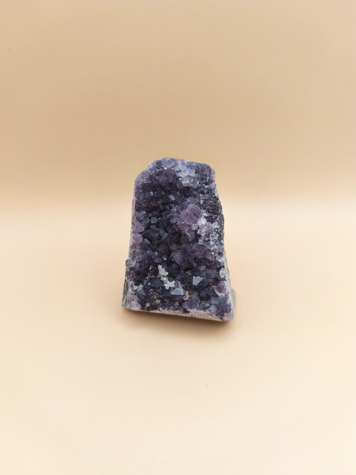 A Drusa de Ametista é uma das pedras mais completas e poderosas para proteção espiritual, transmutação energética, meditação e equilíbrio emocional. Sua formação em drusa permite que a energia se espalhe suavemente por todo o ambiente, elevando a vibração e trazendo paz.