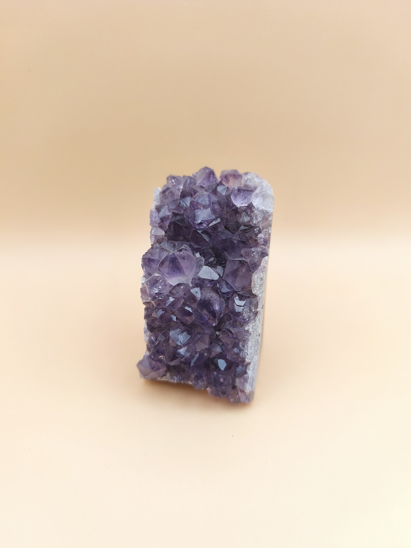 A Drusa de Ametista é uma das pedras mais completas e poderosas para proteção espiritual, transmutação energética, meditação e equilíbrio emocional. Sua formação em drusa permite que a energia se espalhe suavemente por todo o ambiente, elevando a vibração e trazendo paz.