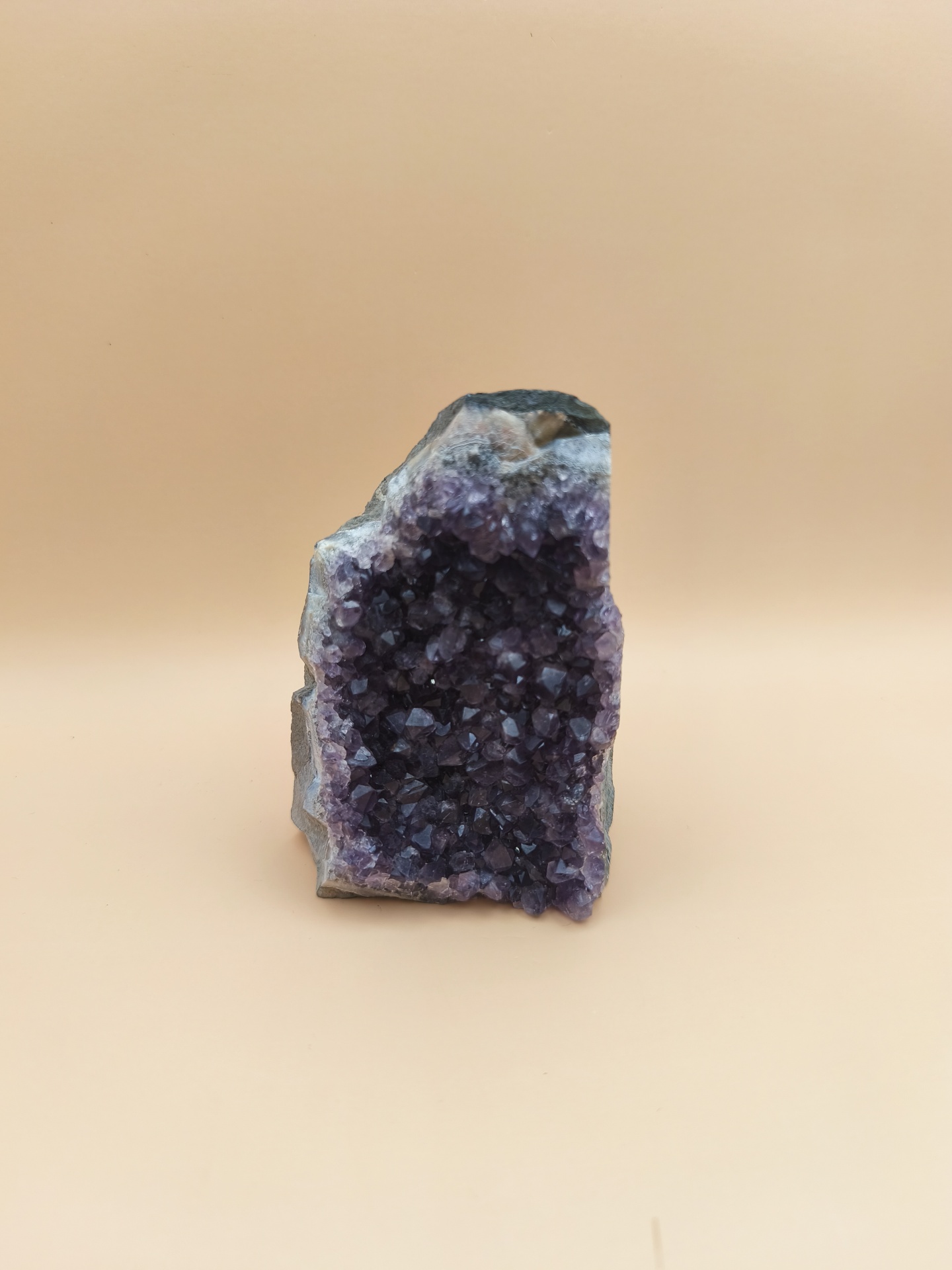 A Drusa de Ametista é uma das pedras mais completas e poderosas para proteção espiritual, transmutação energética, meditação e equilíbrio emocional. Sua formação em drusa permite que a energia se espalhe suavemente por todo o ambiente, elevando a vibração e trazendo paz.