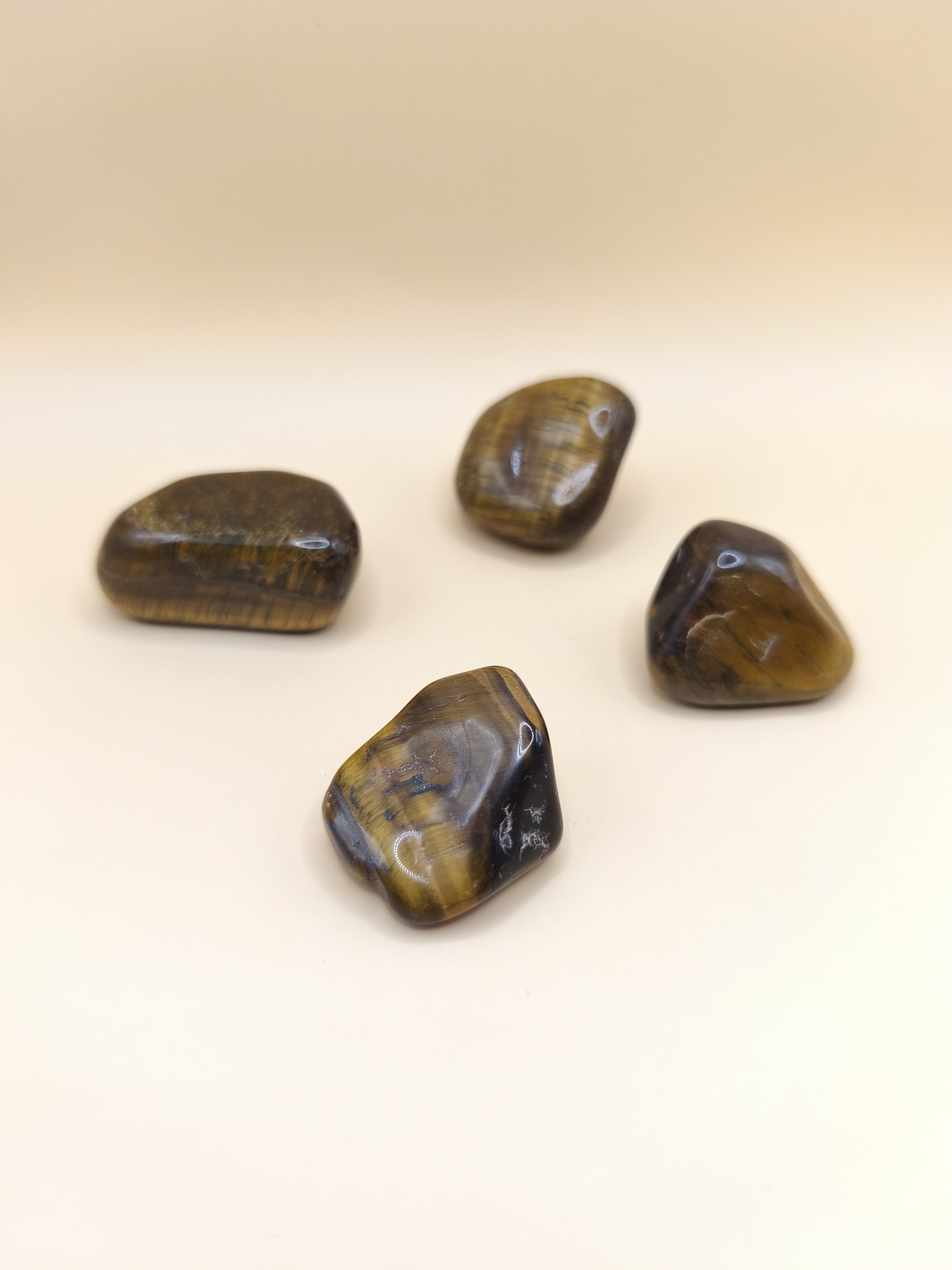 O Olho de Tigre é uma pedra com brilho sedoso e coloração dourado-marrom característica, que lembra o olho de um felino — daí o seu nome. É uma pedra de proteção, coragem e força pessoal, muito usada como amuleto desde a antiguidade. Sua energia combina vitalidade, foco mental e aterramento, tornando-a ideal para quem procura segurança, ação consciente e superação de medos.
