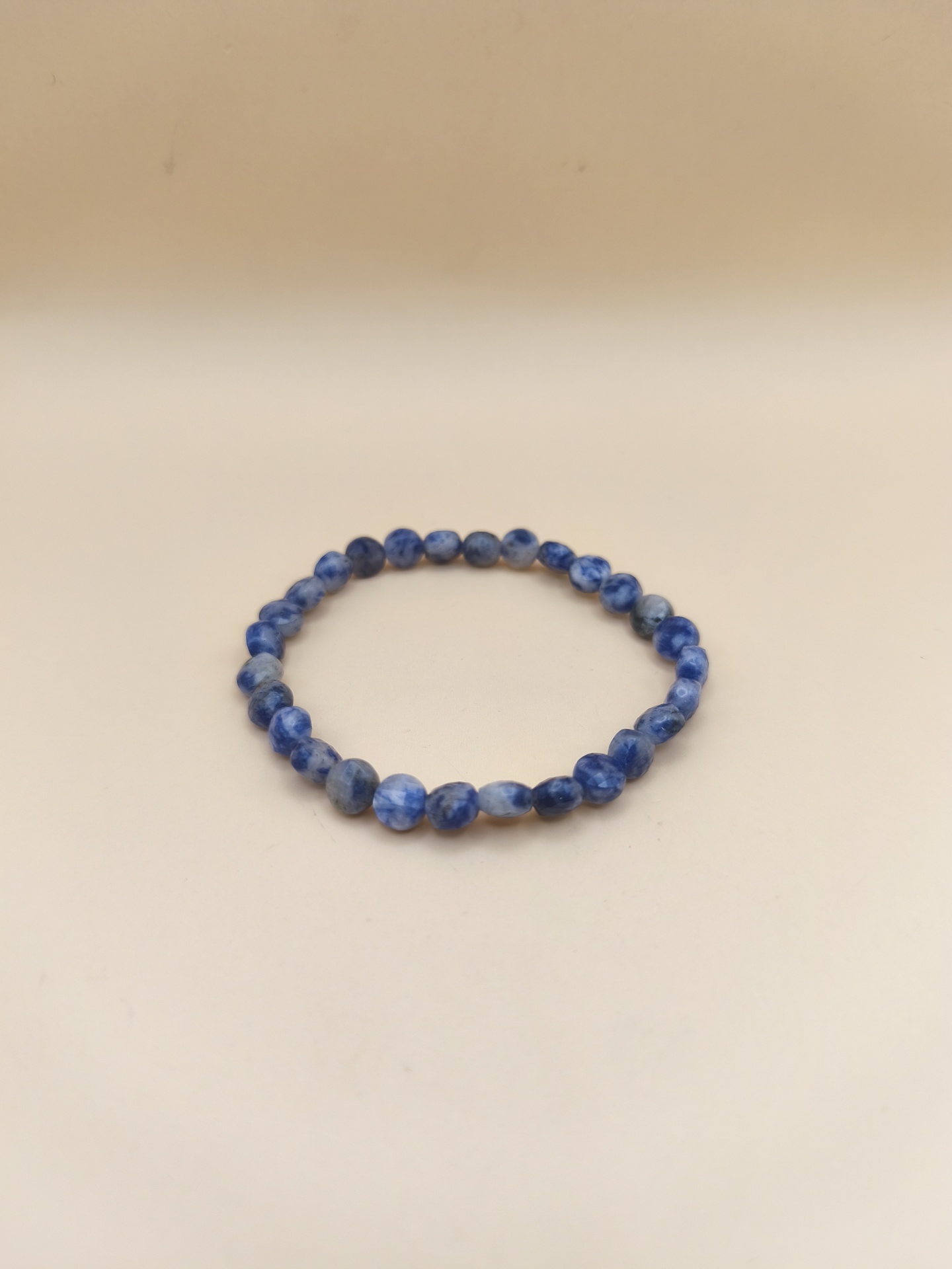 A sodalite é uma pedra de coloração azul profundo, muitas vezes com veios brancos de calcita, e é conhecida como a “pedra da mente racional e da verdade interior”. Fortemente associada ao intelecto e à comunicação, é ideal para quem busca clareza mental, autoconhecimento e equilíbrio entre emoção e lógica. É muito usada em meditação, ambientes de estudo e processos terapêuticos.