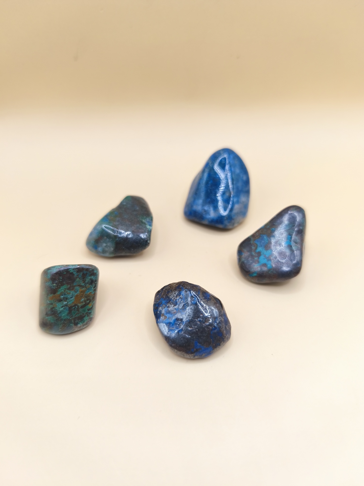 A shattuckite é uma pedra poderosa para comunicação autêntica, conexão espiritual e proteção energética. Seu tom azul profundo acalma, enquanto sua vibração ajuda a alinhar mente, coração e espírito para uma expressão verdadeira e compassiva.