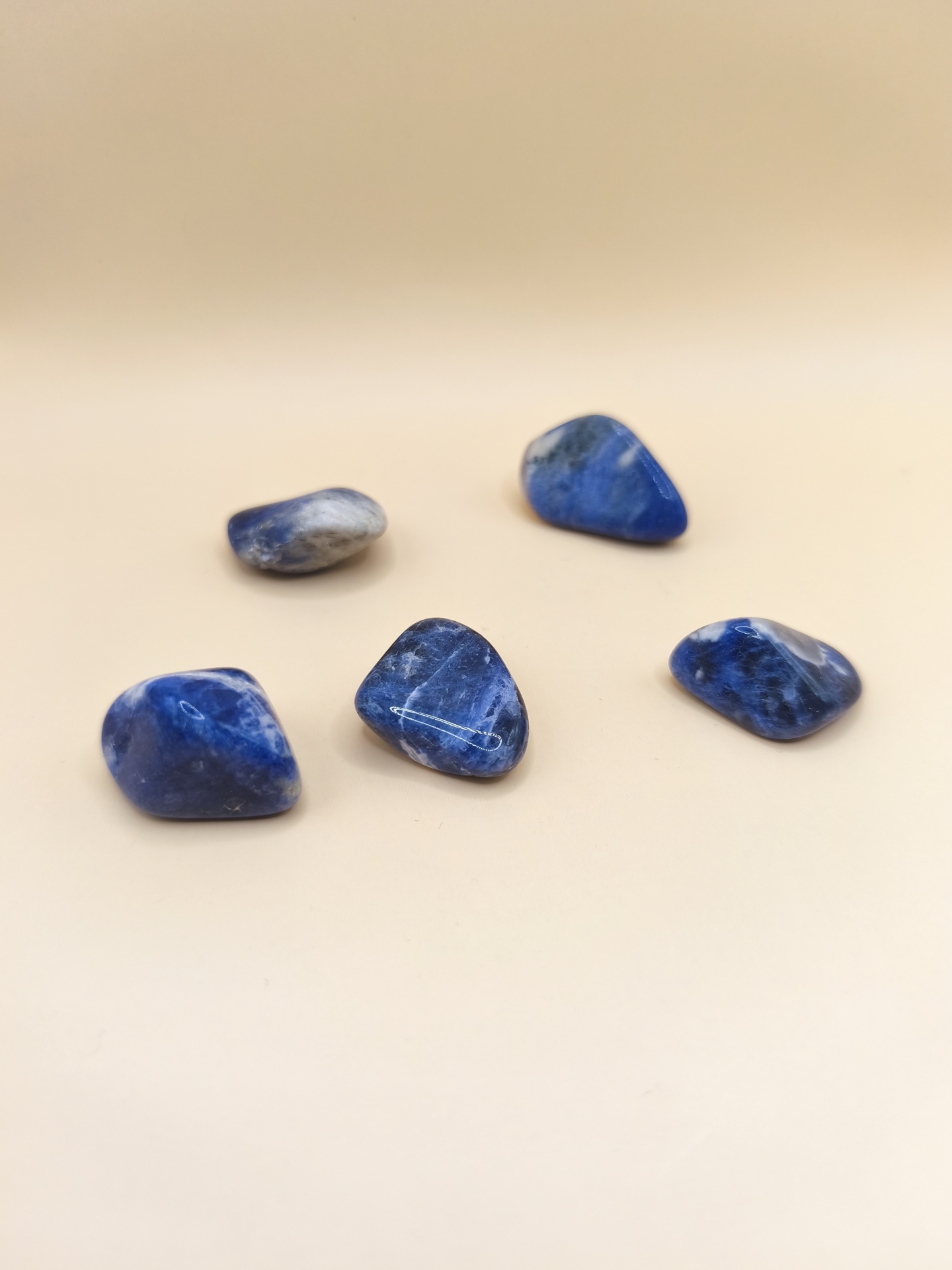 A sodalite é uma pedra de coloração azul profundo, muitas vezes com veios brancos de calcita, e é conhecida como a “pedra da mente racional e da verdade interior”. Fortemente associada ao intelecto e à comunicação, é ideal para quem busca clareza mental, autoconhecimento e equilíbrio entre emoção e lógica. É muito usada em meditação, ambientes de estudo e processos terapêuticos.
