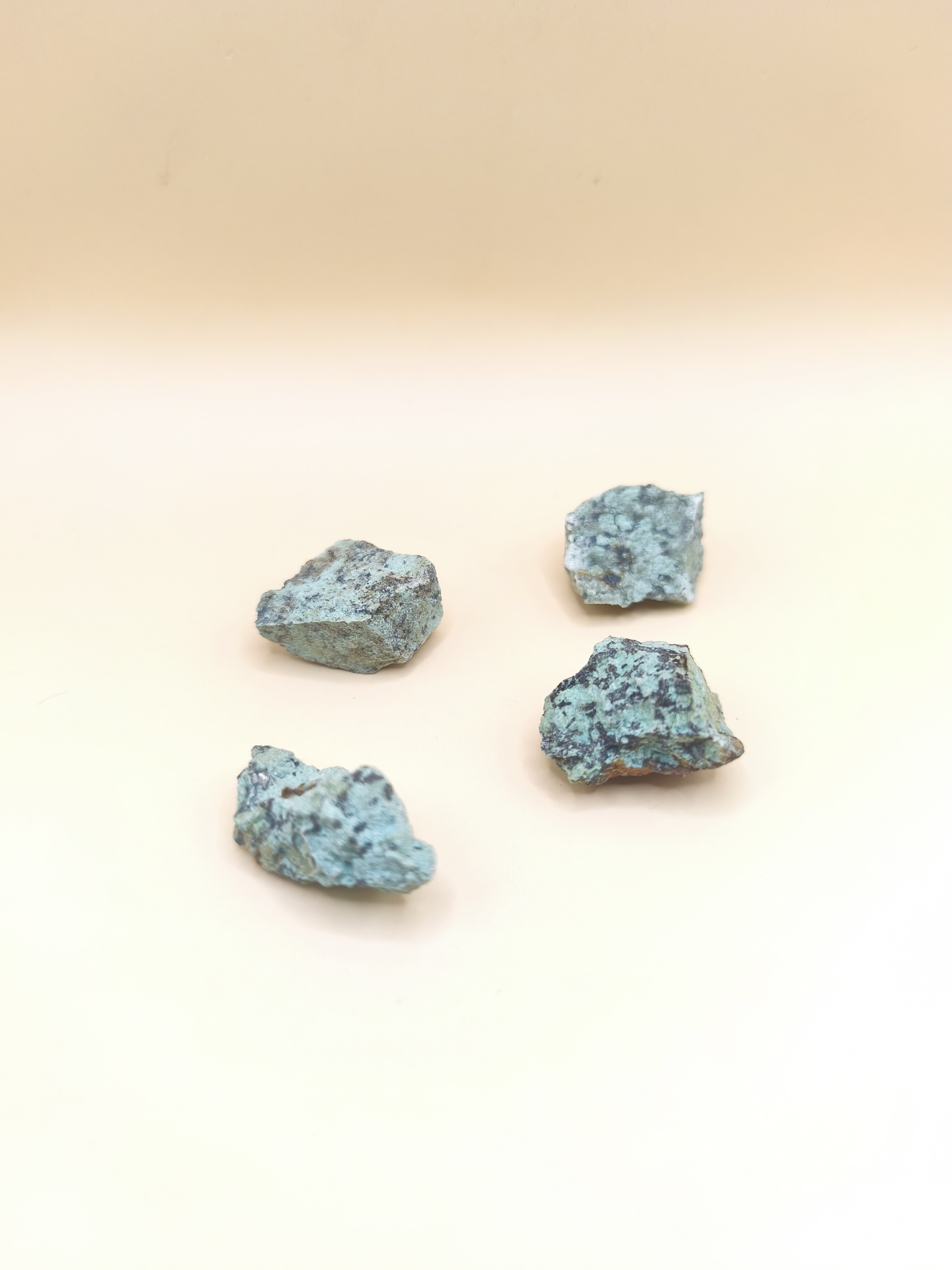 Apesar do nome, a Turquesa Africana não é uma turquesa verdadeira, mas sim uma variedade de jaspe com matriz rica em ferro, cobre e outros minerais, encontrada principalmente na África. Recebe esse nome por sua semelhança visual com a turquesa tradicional. É valorizada por suas tonalidades em verde, azul esverdeado, marrom e preto, e por suas poderosas propriedades de transformação, crescimento interior e alinhamento com o propósito de vida.