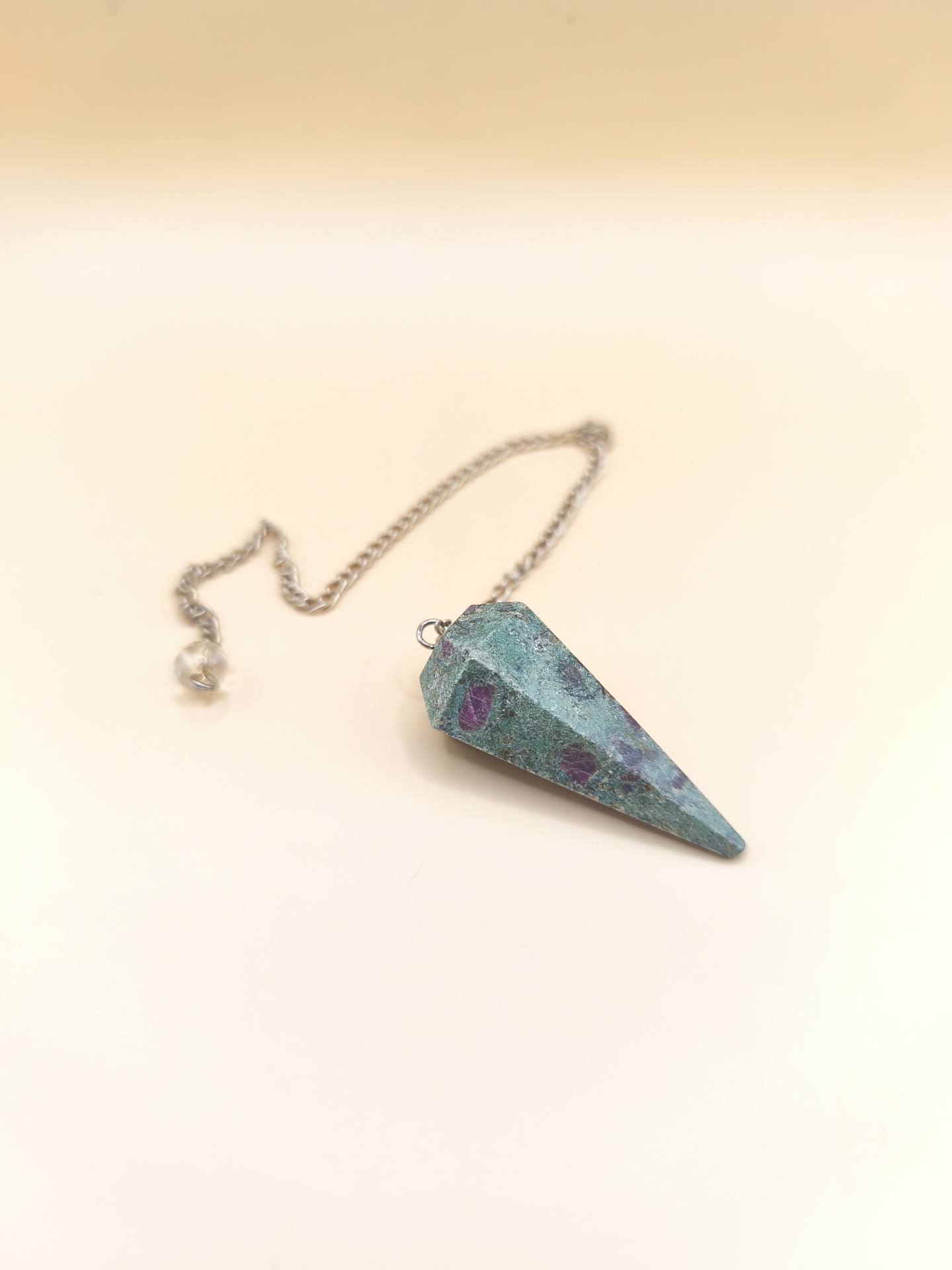 O pêndulo de Zoisita com Rubi une duas energias poderosas: a força emocional e transformadora da zoisita verde com a paixão e a vitalidade do rubi. Essa combinação traz equilíbrio entre coração e mente, estimulando a cura emocional, a autoexpressão autêntica e a realização pessoal com entusiasmo e consciência.
